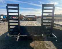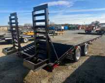 20' DECK, 5' DOVETAIL, 96" WIDE, 5 1/2' SPRING ASSIST RAMPS, 5' NECK, 26 STAKE POCKETS.