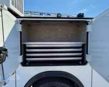 11' AutoCrane Titan Service Steel Body, AutoCrane HC-12S Hydraulic Crane with Wireless Remote, VANAIR "Reliant" RC40 Hydraulic Air Compressor, (8) 27" Drawers, (8) 15" Drawers, (4) 40" Drawers, Hydraulic Outriggers, Strobe Light, Work Lights, Work Space Bumper